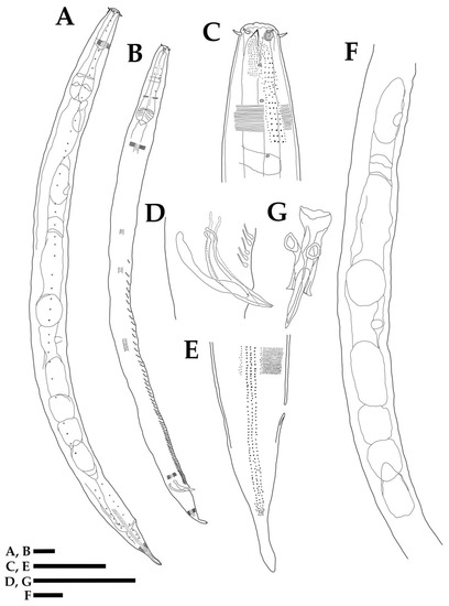 - Hodda, M. Phylum Nematoda: A classification, catalogue and index of valid genera, with a census of valid species. Zootaxa 2022, 5114, 1–289. [Google Scholar] [CrossRef] [PubMed]