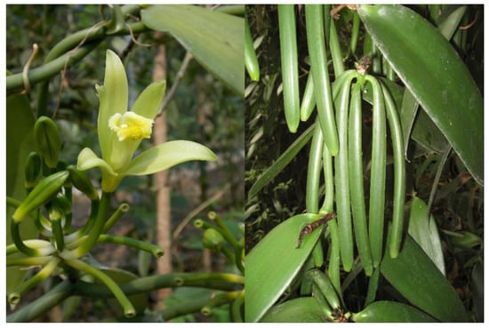 - De Oliveira, R.T.; da Silva Oliveira, J.P.; Macedo, A.F. Vanilla beyond Vanilla planifolia and Vanilla × tahitensis: Taxonomy and Historical Notes, Reproductive Biology, and Metabolites. Plants 2022, 11, 3311. [Google Scholar] [CrossRef]