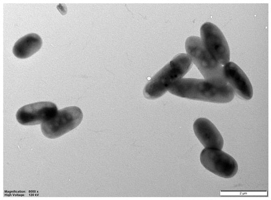 On medium agar R2A, the colonies color of strain RN2-1T varied from silver watercolor to white, circular, convex, slimy, and smooth surface after 5 day-incubation at 30 °C. Strain RN2-1T was Gram-stain-negative, non-spore-forming, non-motile, ovals and rods, 1.5–3.2 µm long and 0.8–1.1 µm wide (Figure 1). The temperature range of growth was 20–40 °C (optimum: 30–35 °C), and the pH range for growth was 6–9 (optimum: 7–8). Strain RN2-1T grew at 0–1% (w/v) NaCl. The growth of the strain was inhibited by NaCl concentrations higher than 1%.