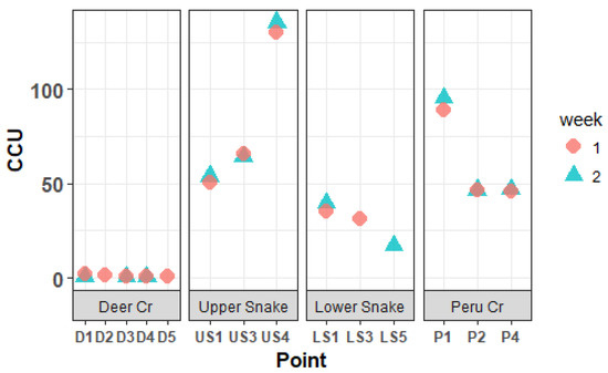 Cumulative Criterion Unit of water samples in the Snake River watershed.