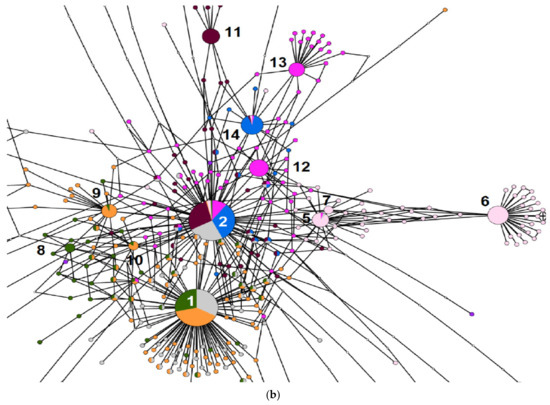 74. Múrias dos Santos, A.; Cabezas, M.P.; Tavares, A.I.; Xavier, R.; Branco, M. tcsBU: A tool to extend TCS network layout and visualization. Bioinformatics 2016, 32, 627–628. [Google Scholar] [CrossRef]