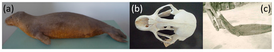 - Maio, N.; Picariello, O. I Pinnipedi e Sirenii del Museo Zoologico dell’Università di Napoli Federico II (Mammalia:Carnivora, Sirenia). Catalogo della collezione con note storiche e osteometriche. Atti. Soc. It Sci. Nat. Museo Civ. Stor. Nat. Milano 2000, 141, 1–18. [Google Scholar]