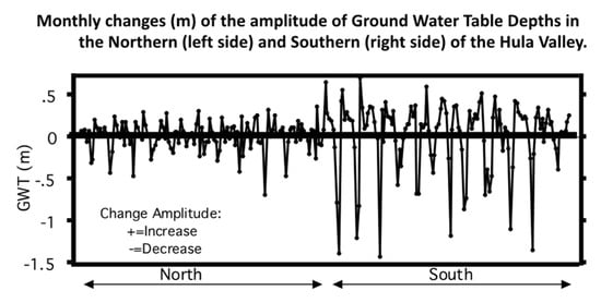 Monthly changes (m) of the amplitude of Ground Water Table Depths in the northern (left) and southern (right) sides of the Hula Valley.