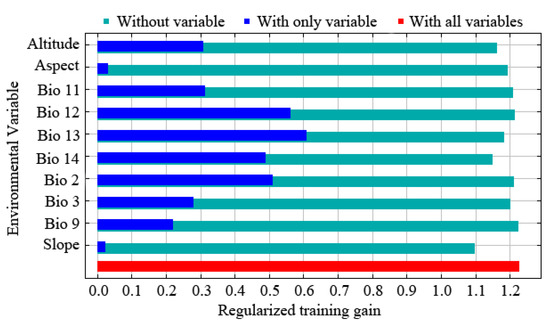 The importance of environmental variables for the distribution of Entodon challengeri in China according to a jackknife test.