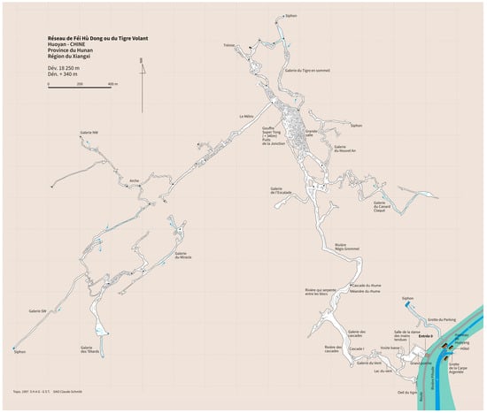Cave map of Feihu Dong: “Topographie de la Grotte du Tigre Volant (Feihu Dong)” drawn by SHAG Caving Association.