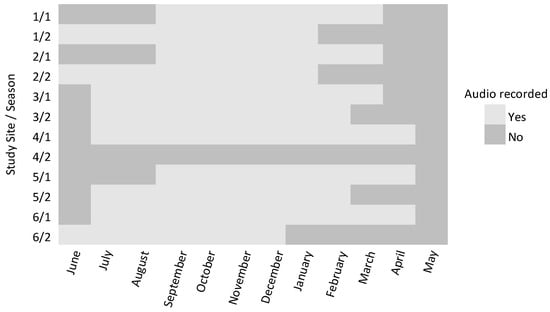 Months of the year audio was recorded at study sites over both breeding seasons. Season 1 = 2016/2017; Season 2 = 2017/2018.