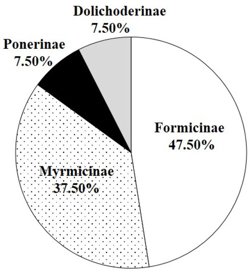- Guénard, B. An overview of the species and ecological diversity of ants. In eLS; JohnWiley & Sons, Ltd.: Chichester, UK, 2013. [Google Scholar]