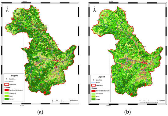 Figure 4. Evolution of land cover classes: (a) 1990; (b) 2000.