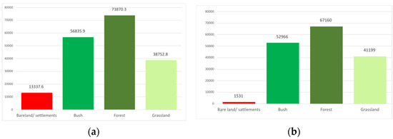 Figure 7. (a) Bareland/settlements; (b) bush.