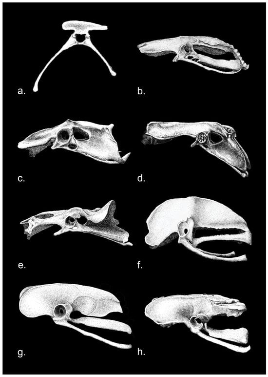 - Hutchinson, J.R. The evolution of pelvic osteology and soft tissues on the line to extant birds (Neornithes). Zool. J. Linn. Soc. 2001, 131, 123–168. [Google Scholar] [CrossRef]