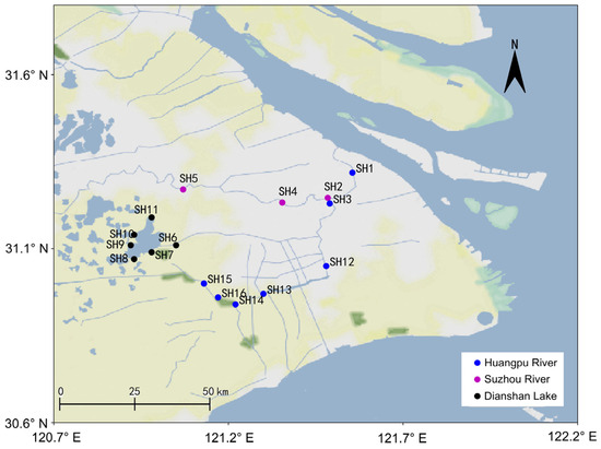 Schematic map of the sampling points in the major rivers of Shanghai.