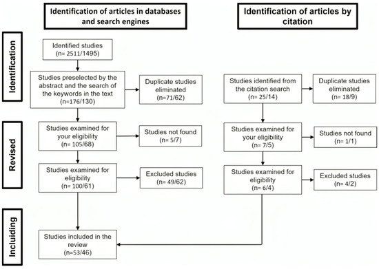 We followed the standard systematic review protocols PRISMA [13,14] to carry out a systematic search for scientific papers reporting the presence of AdVs and HSVs in bat species. The search was conducted using the Scopus, CABI, and SciELO databases, the database of bat-associated viruses (http://www.mgc.ac.cn/DBatVir/, accessed on 1 January 2023), and the search engine Google Scholar. Additionally, our search was complemented by additional publications present in the reference list of each paper that was initially included. The search utilized the keywords “Adenoviridae”, “adenovirus”, “Herpesviridae”, “herpesvirus”, “virome”, and “bat”. This comprehensive search was carried out up until the year 2022 (inclusively).