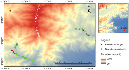 | 8 | B. bungei | Hebei Dahaituo Nature Reserve, Dahaituo | 40°34′51.62″ | 115°46′32.92″ | 1255 |
