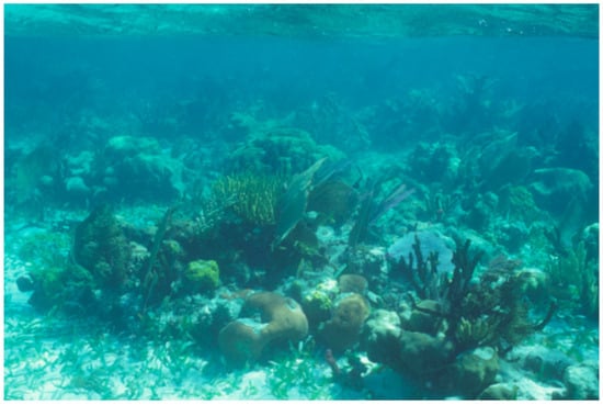 - McField, M.; Bood, N.; Fonseca, A.; Arrivillaga, A.; Franquesa Rinos, A.; Loreto Viruel, R. Status of the Mesoamerican Reef after the 2005 coral bleaching event. In Status of Caribbean Coral Reefs after Bleaching and Hurricanes in 2005; Wilkinson, C., Souter, D., Eds.; Global Coral Reef Monitoring Network, and Reef and Rain- Forest Research Centre: Townsville, Australia, 2005; pp. 45–60. [Google Scholar]