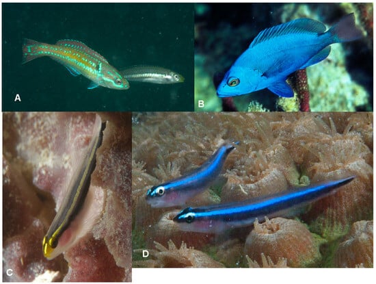 - Randall, J.E.; Lobel, P.S. Halichoeres socialis, a new labrid fish from Belize, Caribbean. Copeia 2003, 2003, 124–130. [Google Scholar] [CrossRef]