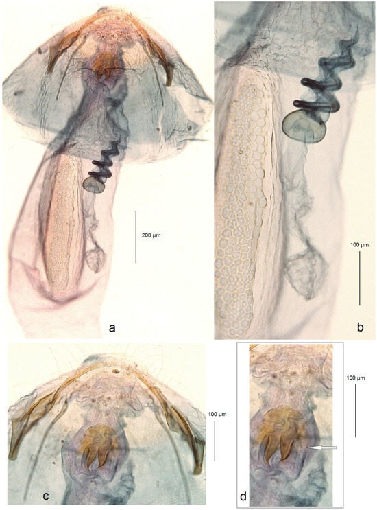 The methods and protocols for the specimen setting, species identification, and description were extensively outlined both earlier [,] and recently by Stonis et al. []. After the maceration of the abdomen in 10% KOH and subsequent cleaning, male genital capsules were removed from the abdomen and mounted with the ventral side uppermost []. The phallus was often removed and mounted alongside the genital armature. Abdominal pelts were not preserved during this study.