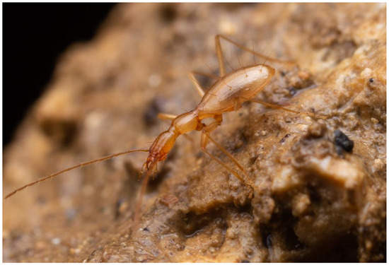 - Coiffait, H. Note sur les Trechidae cavernicoles et endogés de la région Pyrénéenne. Notes Biospéologiques 1958, XIII, 7–23. [Google Scholar]