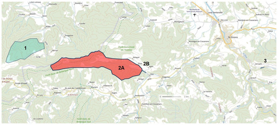It is made up of a homogenous structure of crystalline Mesozoic limestone [13]. The Alas fault forms its northern boundary. To the South, the limestone disappears beneath the clay-gravel formations of the Albo-Cenomanian. The western limit, in continuity with the Arbas massif, is more difficult to define, with metamorphosed limestones interspersed with dolomites. It is supposed to extend to the Col de la Croix de Guéret. Its surface area is mostly covered by forests and pastures. There is very little anthropic activity. Its average altitude is 955 m, ranging from 493 m (altitude of the Las Hountas resurgence) to 1417 m (altitude of the Tuc de Graué). Annual precipitation is around 1700 mm, the climate is oceanic with high water level ranging from November to April. The average temperature is 12.3 °C [10,11,12].