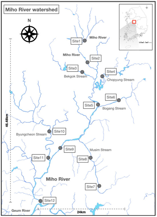 - NIER. Biomonitering Survey and Assessment Manual; Office of Water and Environmental Engineering, National Institute of Environmental Research: Seoul, Republic of Korea, 2019; p. 129. [Google Scholar]