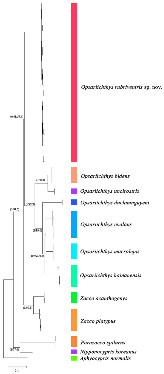 | PP975440 | Opsariichthys rubriventris sp. nov. | Xizhijiang River, Huizhou, Guangdong, China | This Study |
