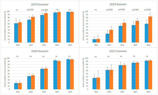 3.2. The Effect of Weather Conditions on Seed Predation