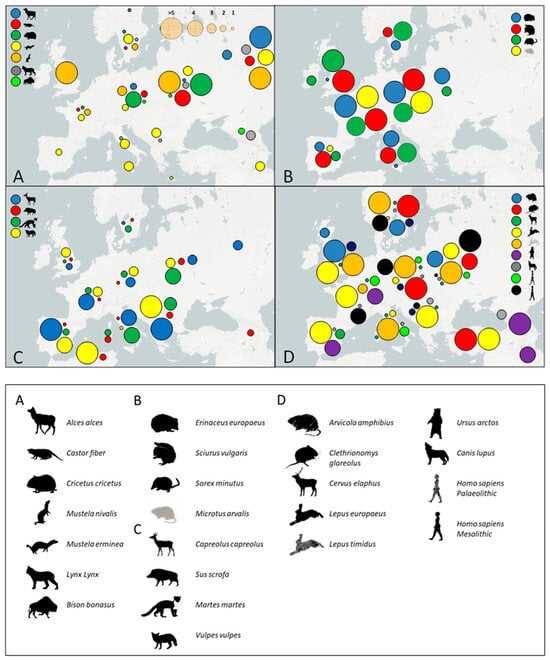 - Sommer, R.; Benecke, N. Late- and Post-Glacial history of the Mustelidae in Europe. Mammal Rev. 2004, 34, 249–284. [Google Scholar] [CrossRef]