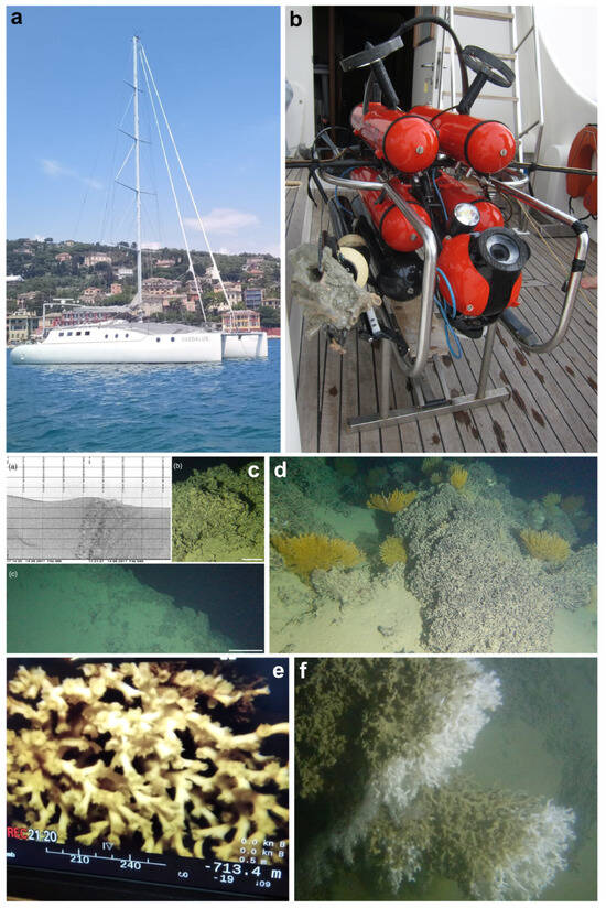 Since then, research in this area of the Ligurian Sea has continued with regularity: an important role was played by the programme of the Italian National Research Council (CNR) “Oceanografia e Fondi Marini” (oceanography and seafloors) (1977–1981), which committed various units primarily operating under the University of Genoa [15]. The seabed around the Promontory of Portofino thus became the most widely studied in the entire Ligurian Sea [41,42]. Much of the research that has begun in this area is continuing at the Earth, Environment and Life Sciences Department (DiSTAV) and the Interuniversity Center for Scientific Cooperation Europe—Latin America (C.I.C.S “EULA”).