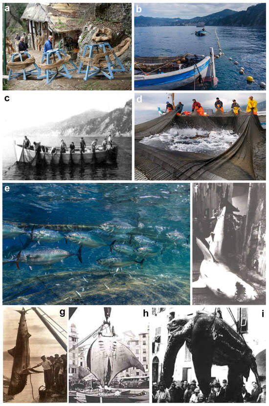 - Cattaneo-Vietti, R.; Bava, S. La Tonnarella e la Pesca Artigianale a Camogli; Le Mani. MicroArt’sPubl: Recco, 2009; pp. 1–143. [Google Scholar]