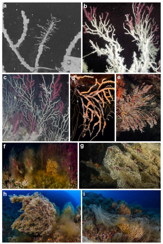 - Bavestrello, G.; Cerrano, C.; Zanzi, D.; Cattaneo-Vietti, R. Damage by fishing activities to the Gorgonian coral Paramuricea clavata in the Ligurian Sea. Aquat. Cons. Mar. Freshw. Ecosyst. 1997, 7, 253–262. [Google Scholar] [CrossRef]