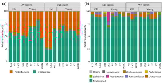- Qin, Y.; Fan, B.; Mei, L. Comparative of bacterial community composition and diversity in the Wangfeng Lake between wet season and dry season. J. Dalian Ocean. Univ. 2023, 38, 414–422. [Google Scholar] [CrossRef]