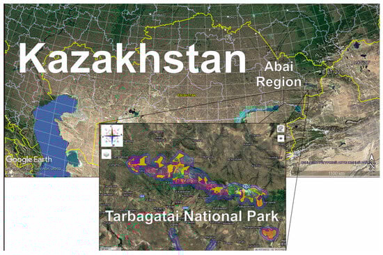 - Ogar, N.P. Natural-Scientific Substantiation of the Creation of the Tarbagatai State National Nature Park; Limited Liability Company Center for Remote Sensing and GIS Terra: Almaty, Kazakhstan, 2014; 320p. [Google Scholar]