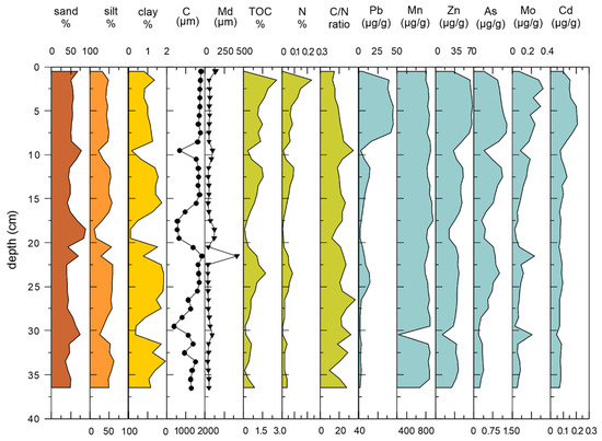 - Müller, A.; Mathesius, U. The Palaeoenvironments of Coastal Lagoons in the Southern Baltic Sea, I. The Application of Sedimentary Corg/N Ratios as Source Indicators of Organic Matter. Palaeogeogr. Palaeoclimatol. Palaeoecol. 1999, 145, 1–16. [Google Scholar] [CrossRef]