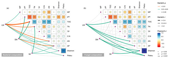 - Yang, Y.; Chai, Y.; Xie, H.; Zhang, L.; Zhang, Z.; Yang, X.; Hao, S.; Gai, J.; Chen, Y. Responses of soil microbial diversity, network complexity and multifunctionality to three land-use changes. Sci. Total Environ. 2023, 859, 160255. [Google Scholar] [CrossRef]