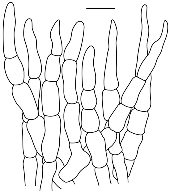 Pileipellis of Russula subswatica. Scale bar: 10 μm.