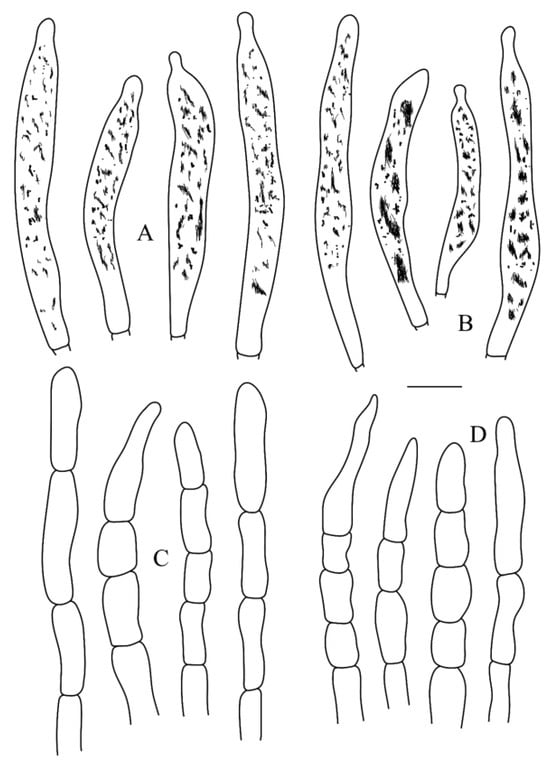 - Hyde, K.D.; Tennakoon, D.S.; Jeewon, R.; Bhat, D.J.; Maharachchikumbura, S.S.N.; Rossi, W.; Leonardi, M.; Lee, H.B.; Mun, H.Y.; Houbraken, J.; et al. Fungal diversity notes 1036–1150: Taxonomic and phylogenetic contributions on genera and species of fungal taxa. Fungal Divers. 2019, 96, 1–242. [Google Scholar] [CrossRef]