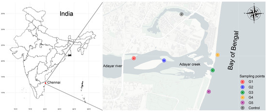 - Veerasingam, S.; Venkatachalapathy, R.; Ramkumar, T. Historical environmental pollution trend and ecological risk assessment of trace metals in marine sediments off Adyar estuary, Bay of Bengal, India. Environ. Earth Sci. 2014, 71, 3963–3975. [Google Scholar] [CrossRef]