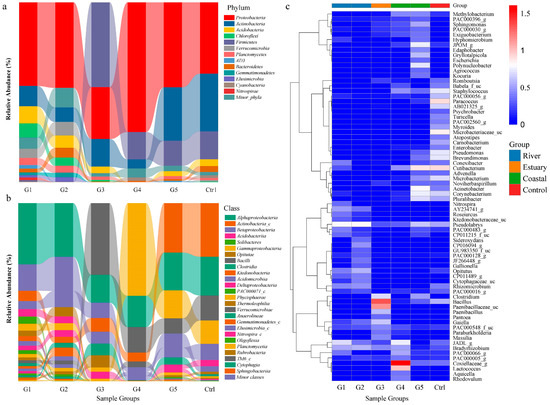 - Du, M.; Zheng, M.; Liu, A.; Wang, L.; Pan, X.; Liu, J.; Ran, X. Effects of emerging contaminants and heavy metals on variation in bacterial communities in estuarine sediments. Sci. Total Environ. 2022, 832, 155118. [Google Scholar] [CrossRef]
