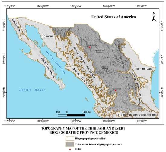 Topography map of the Chihuahuan Desert biogeographic province of Mexico [].