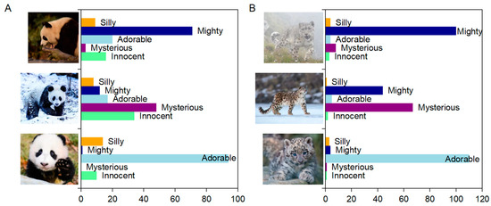 Immediate impressions from respondents to the photos for the giant panda (A) and the snow leopard (B) in an independent pilot survey.