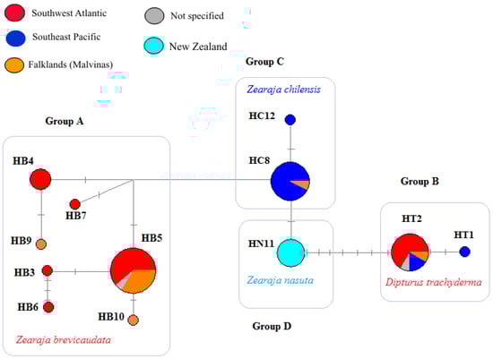 - Izzo, S.; Andreoli, G.; Figueroa, D.E.; Costagliola, M. Molecular characterization of sympatric skates of the Dipturus and Zearaja genera of the Argentine Sea with DNA Barcode. Rev. Investig. Desarr. Pesq. 2017, 31, 55–74. [Google Scholar]