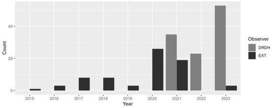 - Coché, L.; Arnaud, E.; Bouveret, L.; David, R.; Foulquier, E.; Gandilhon, N.; Jeannesson, E.; Le Bras, Y.; Lerigoleur, E.; Lopez, P.J.; et al. Kakila database: Towards a FAIR community approved database of cetacean presence in the waters of the Guadeloupe Archipelago, based on citizen science. Biodivers. Data J. 2021, 9, e69022. [Google Scholar] [CrossRef] [PubMed]