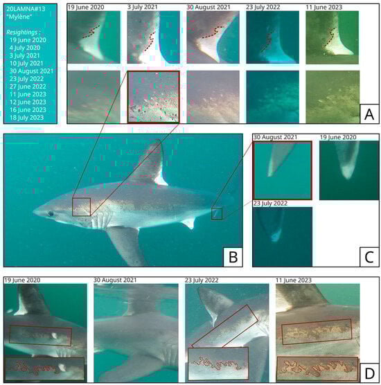 Chicago/Turabian StyleJung, Armelle, Arthur Ory, Paul Abaut, and Lucas Zaccagnini. 2024. "First Use of Free-Diving Photo-Identification of Porbeagle Shark (Lamna nasus) off the Brittany Coast, France" Diversity 16, no. 3: 155. https://doi.org/10.3390/d16030155