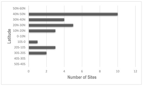 Distribution of subterranean hotspot sites by latitude. See Table 1.