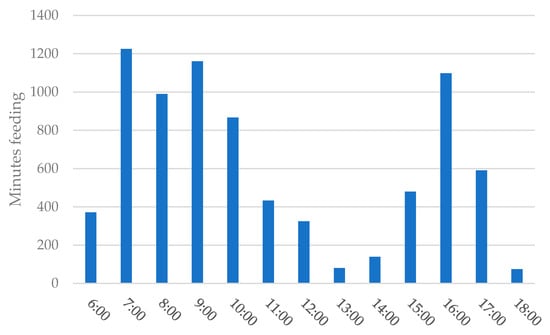 Hourly distribution of feeding times of the released Golden Parakeets.