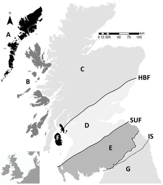 - Gillen, C. Geology and Landscapes of Scotland; Terra: Harpenden, UK, 2003. [Google Scholar]