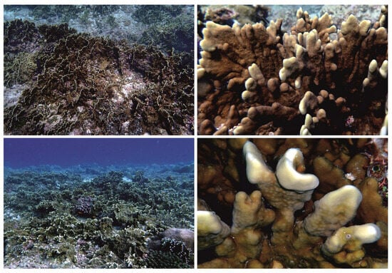 - Marshall, P.A.; Baird, A.H. Bleaching of corals on the Great Barrier Reef: Differential susceptibilities among taxa. Coral Reefs 2000, 19, 155–163. [Google Scholar] [CrossRef]
