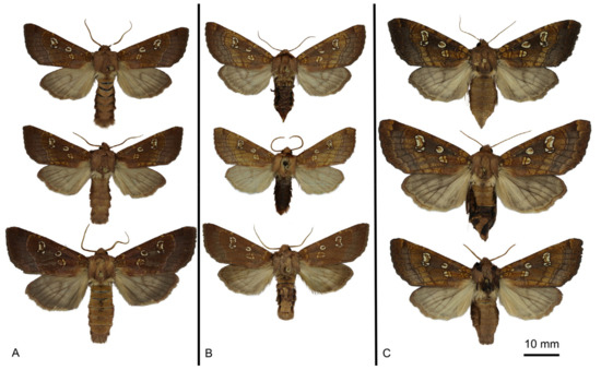 - Rákosy, L. Die Noctuiden Rumäniens (Lepidoptera: Noctuidae); Stapfia 46: Linz, Austria, 1996; p. 648. [Google Scholar]