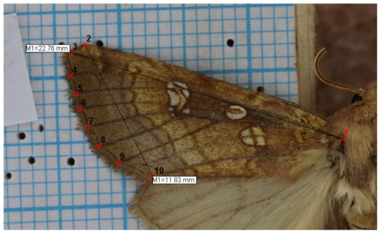 The use of geometric and traditional morphometric measurements has proven successful in many studies of wing shape variation among Lepidoptera species over the years [78,79,80,81,82,83,84], and these methods were also applied in our study.