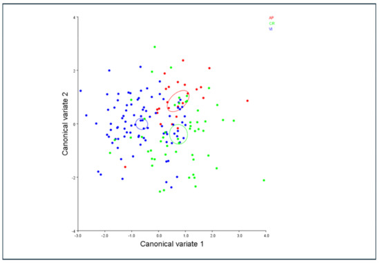 We followed with a permutation test, using 10,000 permutation rounds for Procrustes distances among groups; all results were statistically significant (Table 4). Finally, we performed a Canonical Variance Analysis to illustrate the shape differences between the populations (Figure 9).