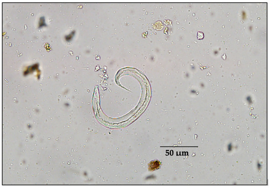 - Verocai, G.G.; Kafle, P.; Sulliotti, V.; Lejeune, M.; Hoberg, E.P.; Kutz, S.J. Morphometry of first-stage larvae of Orthostrongylus macrotis (Nematoda: Protostrongylidae), lungworm of wild ungulates from western North America. J. Parasitol. 2022, 108, 322–329. [Google Scholar] [CrossRef] [PubMed]